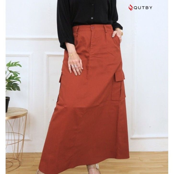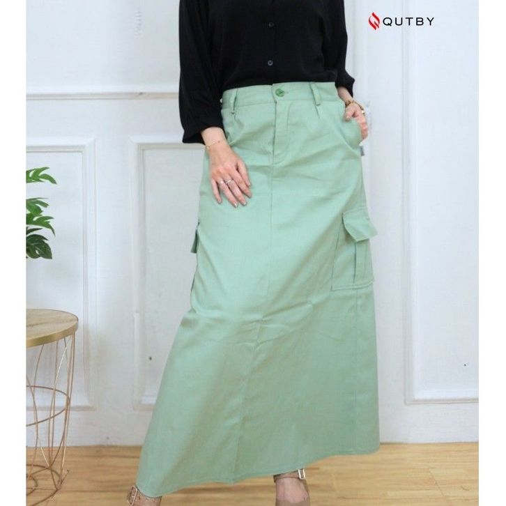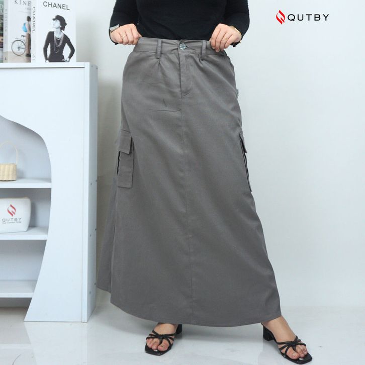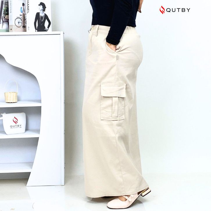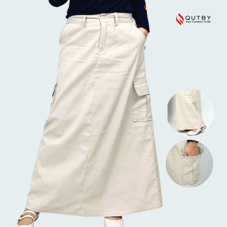 QUTBY - Rok Cargo A-Line Wanita Katun Twill Premium