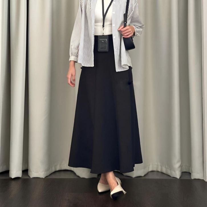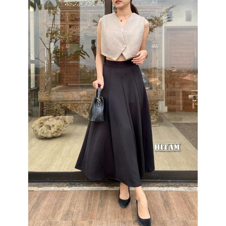Audy Skirt | Korean Loose Maxi Skirt | Rok Flare Wanita | Rok Basic Polos | Rok Panjang Wanita Scuba Premium