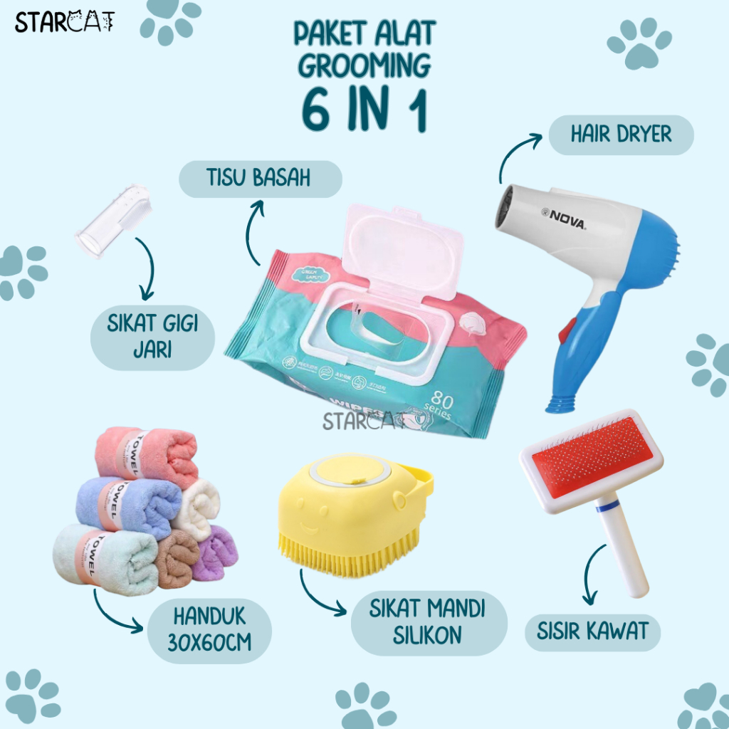 Paket Alat Grooming Kucing Hewan Peliharaan Tisu Basah Sisir Sikat Mandi Paket Perawatan Diri Kucing