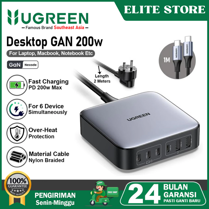 Desktop Charger UGREEN GAN 6-Port For Macbook Laptop Fast Charging 200W 40914 Original Garansi Resmi (GRATIS ONGKIR)