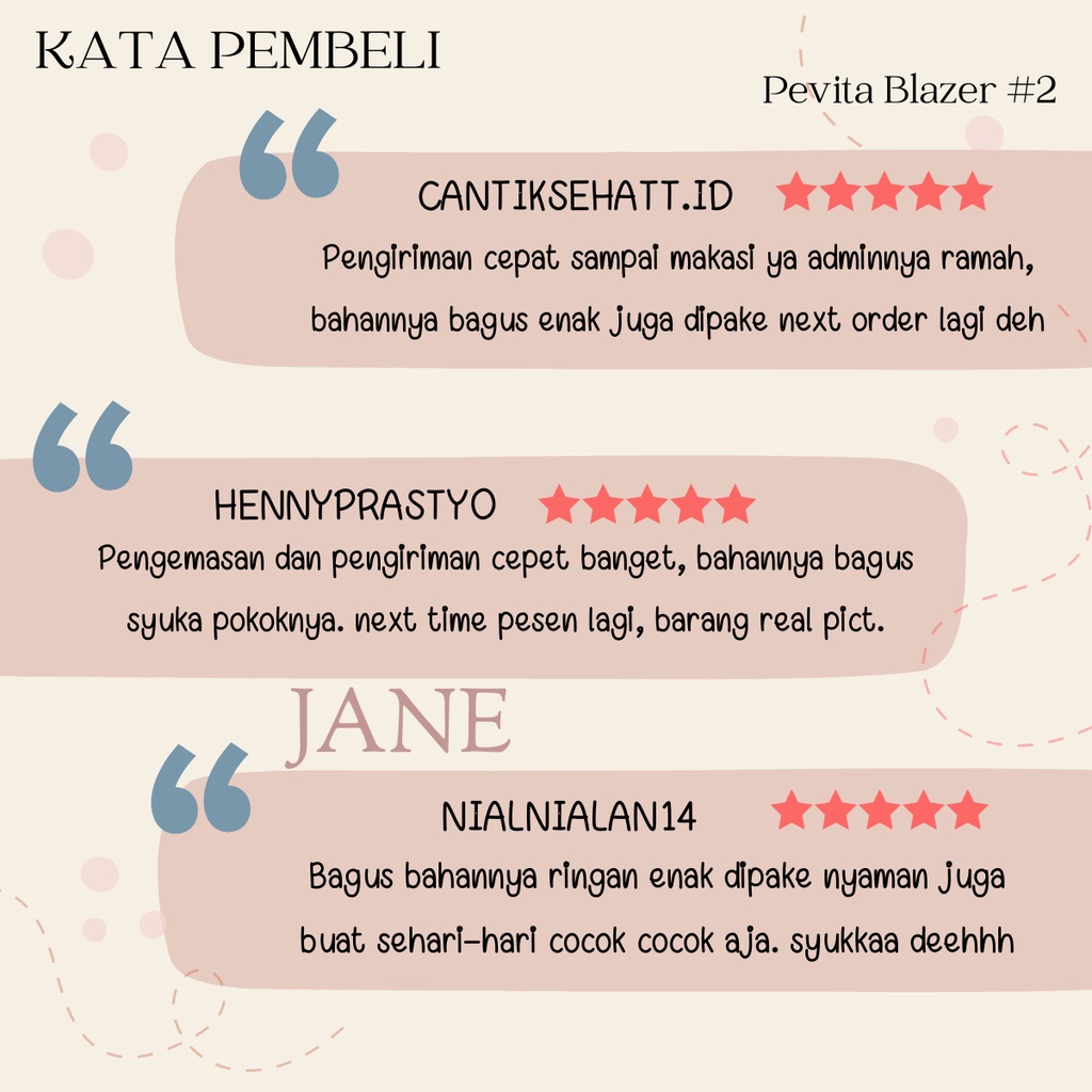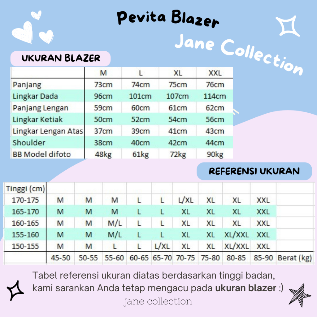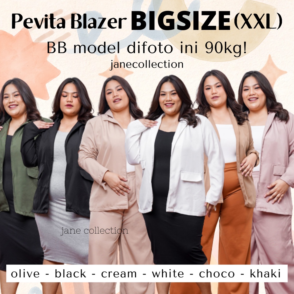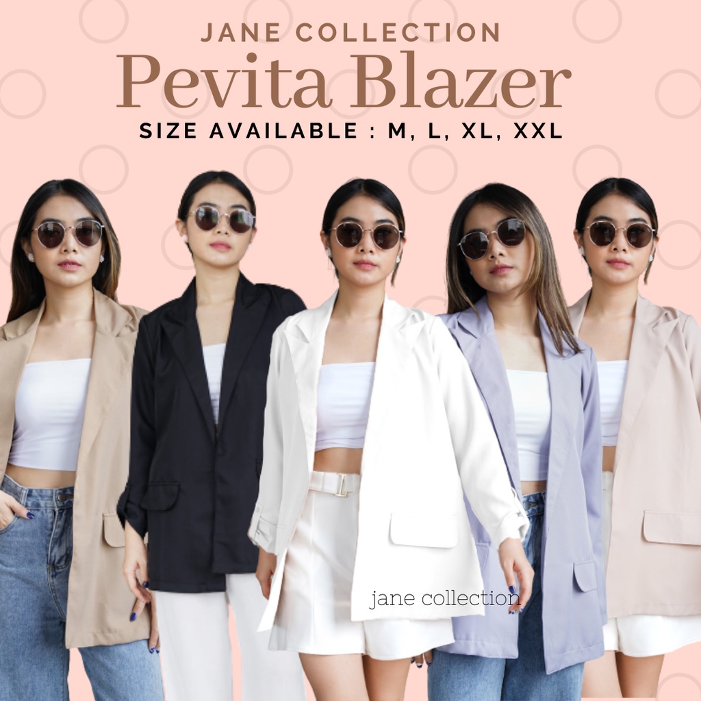 JANE COLLECTION || BLAZER FORMAL KERJA WANITA FASHION ATASAN KOREA JUMBO - PEVITA BLAZER BIGSIZE M L XL XXL HITAM PUTIH
