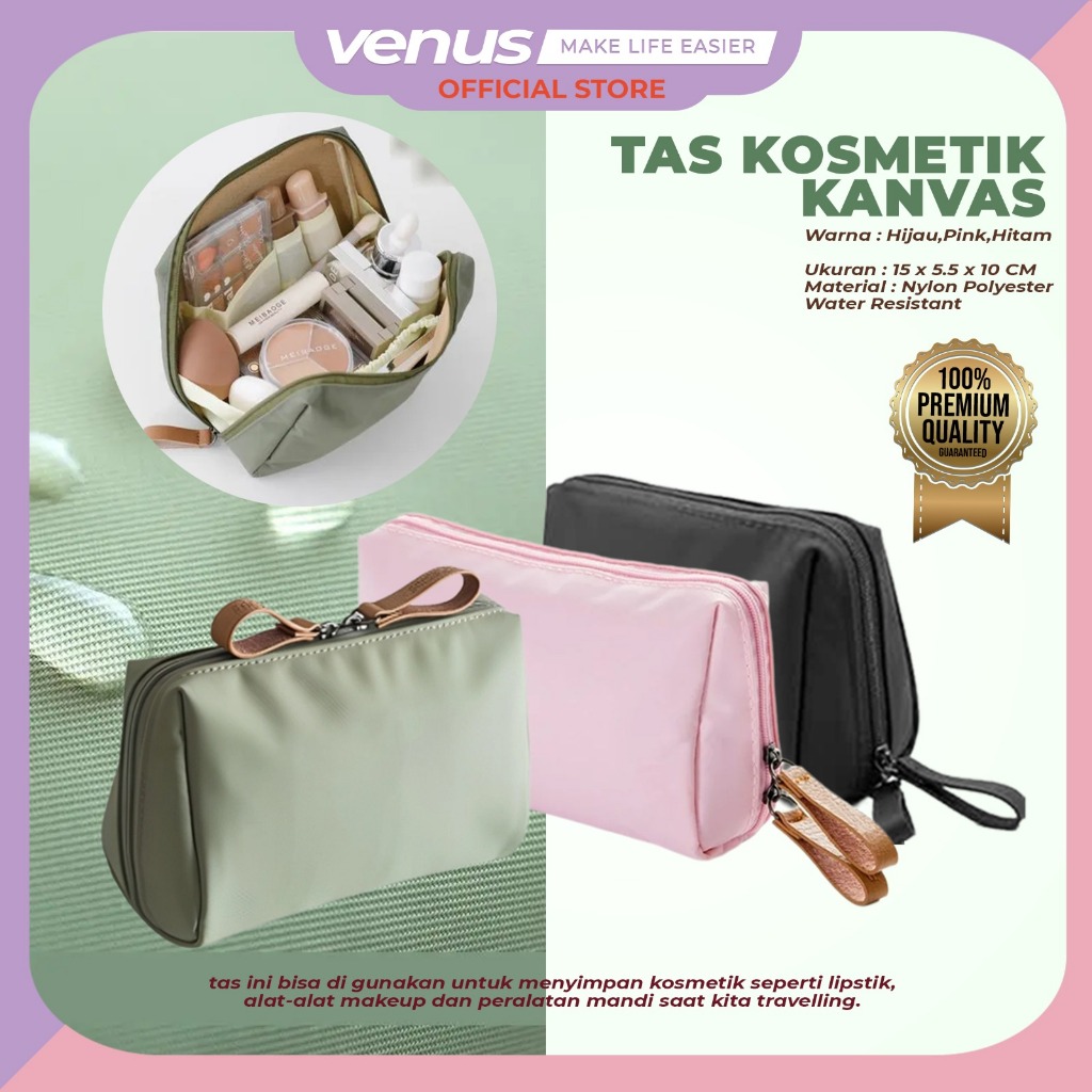 TAS KOSMETIK SIMPLE COSMETIC BAG WANITA TAS LIPSTIK KOSMETIK WATERPROOF IMPOR WATER RESISTANT COSMETIC CUBE POUCH KANVAS TRAVELKIT S1310