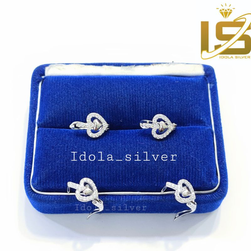 ANTINGG PERAK ASLI SILVER 925 LAPIS EMS MODEL JEPIT LOVE PERMATA - PERHIASAN PERAK WANITA