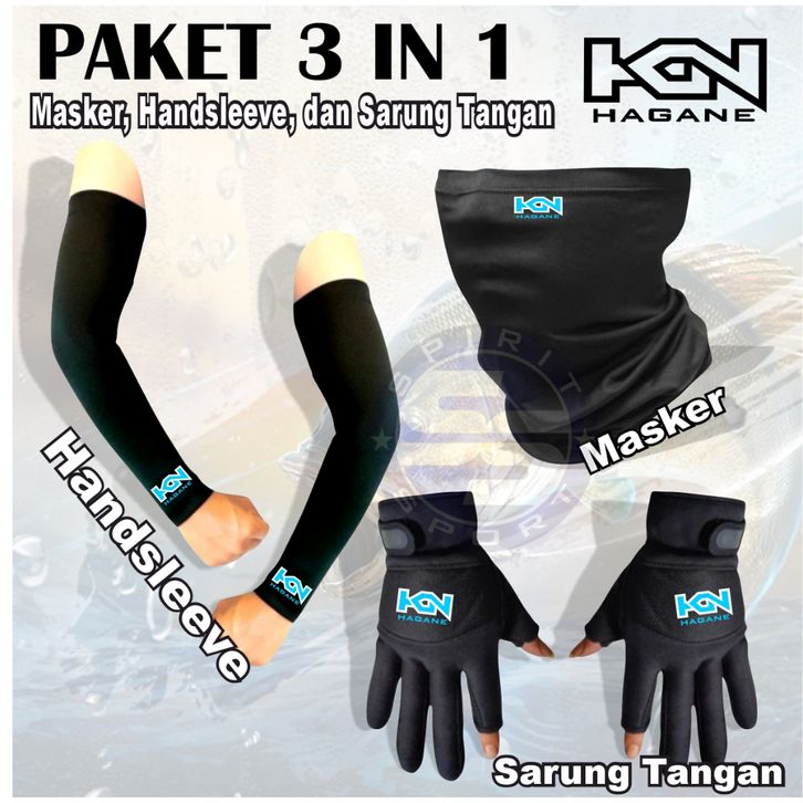 Sarung Tangan Paket Mancing 3 in 1 Sarung Tangan Masker buff dan Handsleeve Memancing Ringan Anti UV Motif HGN
