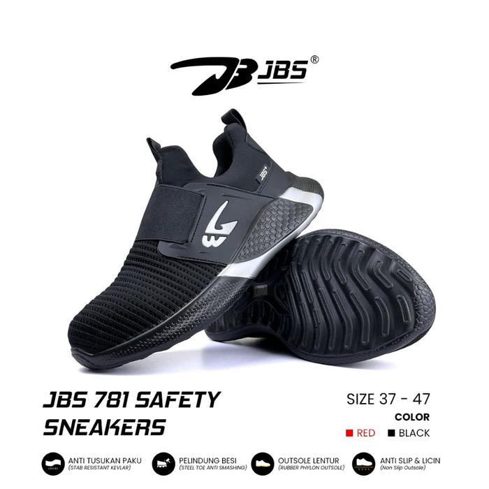 Sepatu Safety Sepatu Safety Sneakers JBS 781 Slip On with Steel Toe Black Merah Casual Shoes Pria
