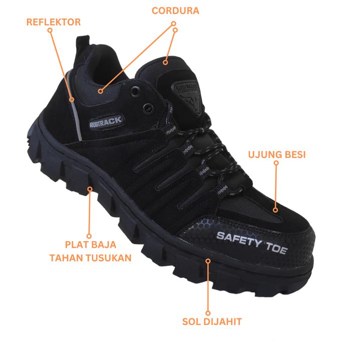 Sepatu Safety Sepatu Safety Pria Ujung Besi Tahan Paku Tahan Benturan Hitam Lava Rubtrack Kerja