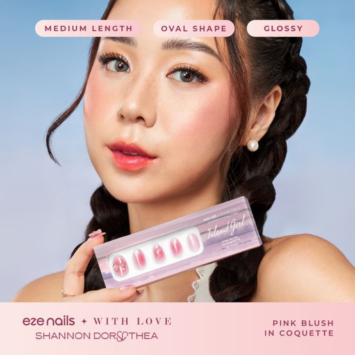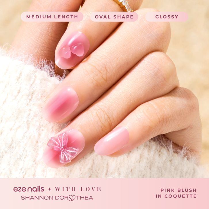 Stiker Kuku Eze Nails - Pink Blush in Coquette Spot On Manicure Kuku Palsu Tempel
