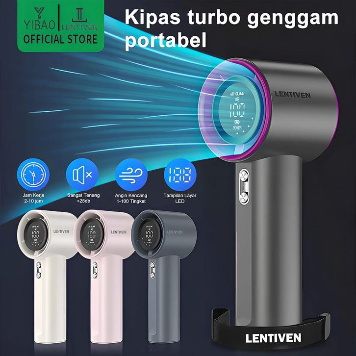 YIBAO LENTIVEN Kipas Turbo Kecepatan Tinggi Portabel Semikonduktor Genggam Fan Pendingin Mini Meja Tampilan Digital Ola
