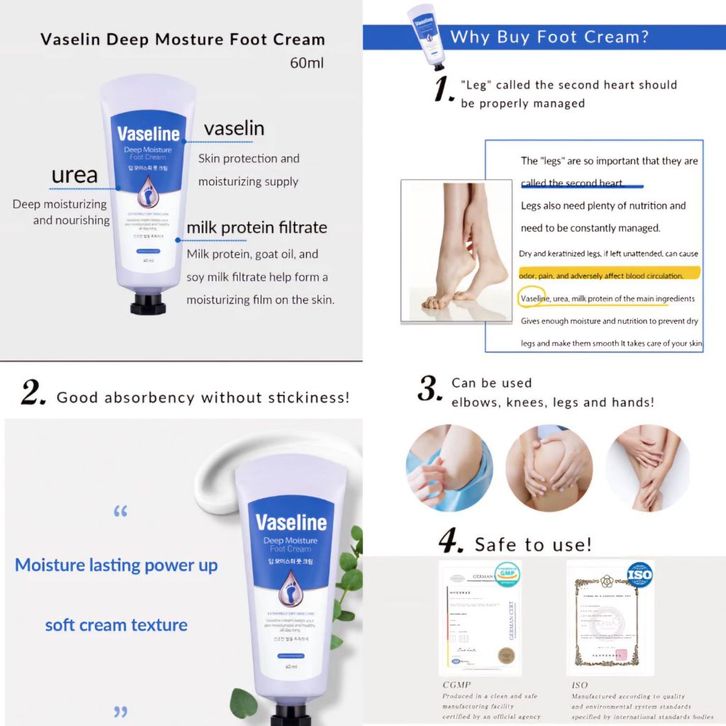 Pelembab Tangan VASELINE DEEP MOISTURE FOOT HAND NAIL CREAM 60mili ORIGINAL KOREA - KRIM KAKI TANGAN KUKU