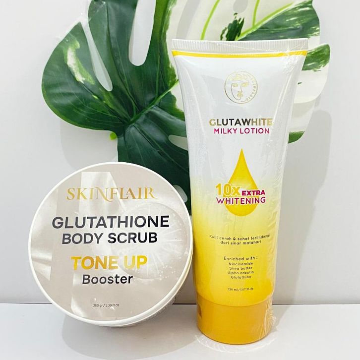 body scrub BUNDLING Skinflair Glutawhite Milky Lotion & Body Scrub Tone Up Booster