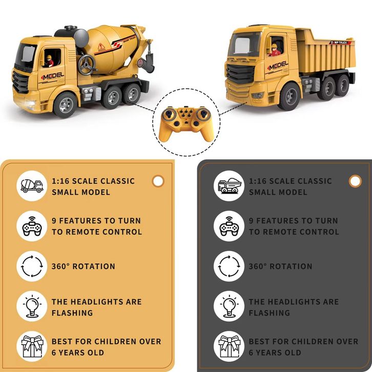 Mainan mobil truck remote roda 6 konstruksi hengjian molen mixer & dump truck rc 2.4ghz 11ch 1:18