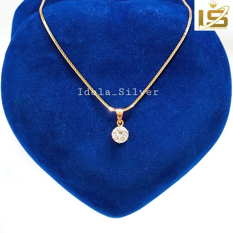 KALUNGG PERAK ASLI SILVER WANITA DEWASA 925 LAPIS EMS RANTAI ITALISANTA DENGAN LONTIN SOLITER PERMATA 0,6 MM - PERHIASA