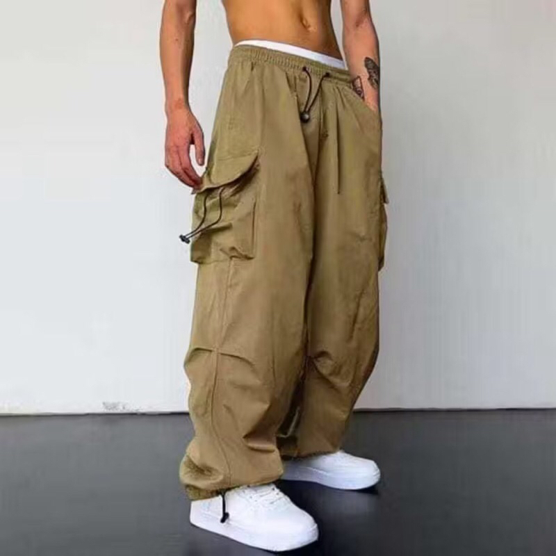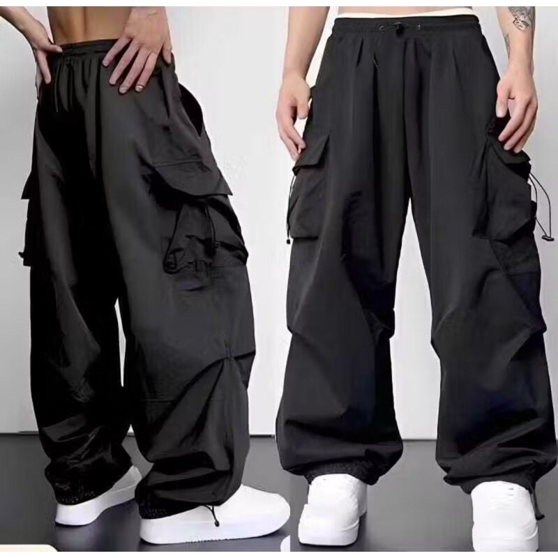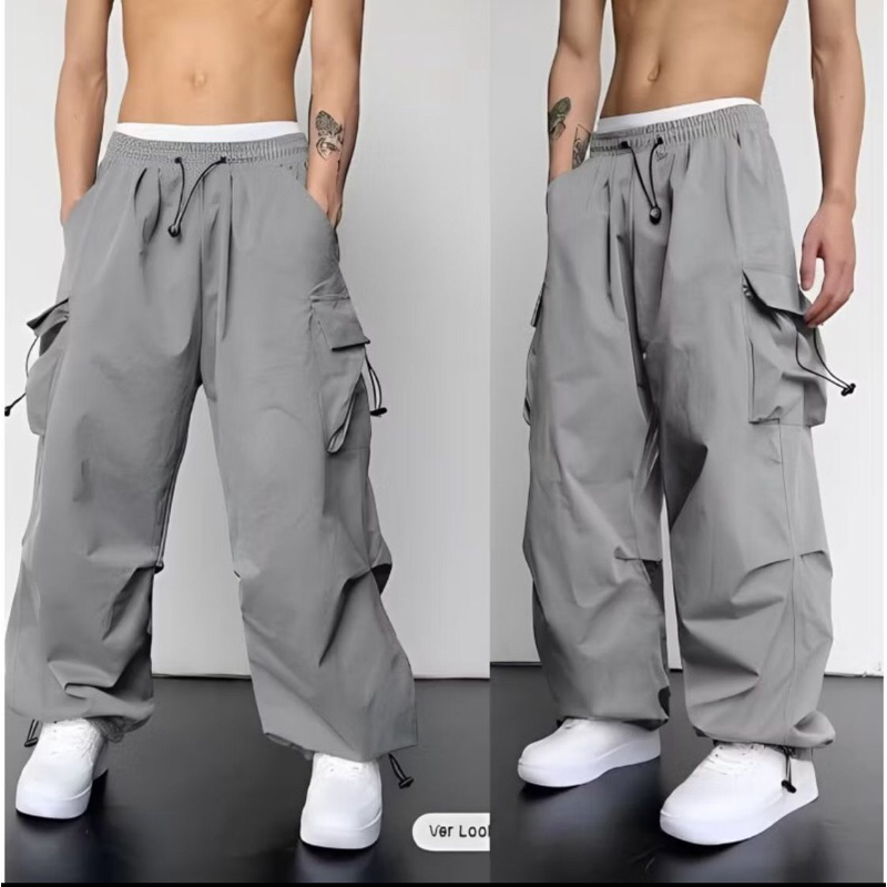 Celana Cargo Pria Panjang Model Terbaru High Waist Korean Stail Casul Tali Serut Pinggang Karet