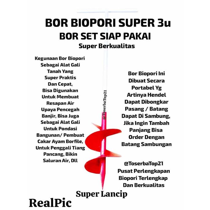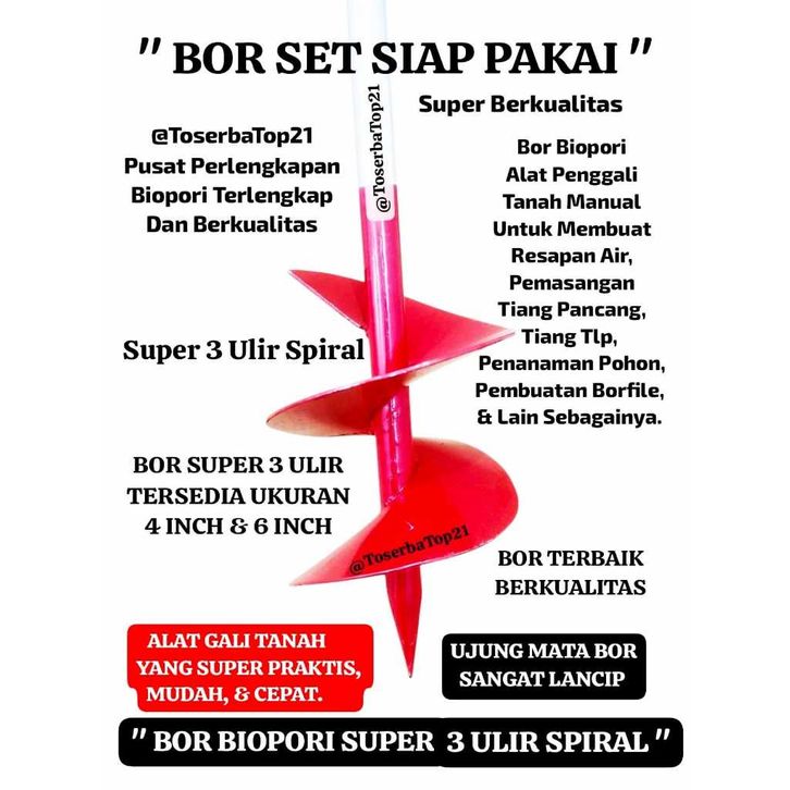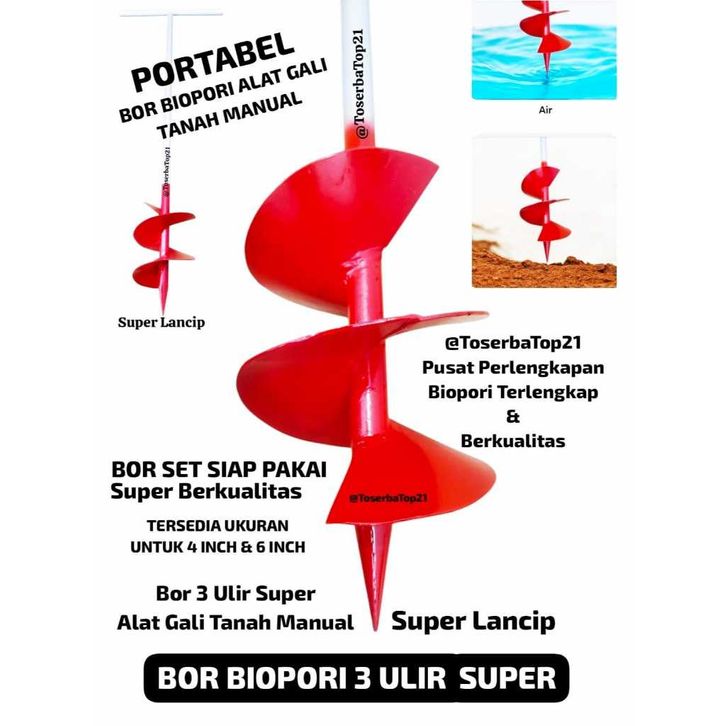Alat Gali Tanah Bor Biopori / Bor Biopori Spiral Super Lancip 3u Biopori Bor Tanah Manual Diameter 4 inch /Bor Pembuatan