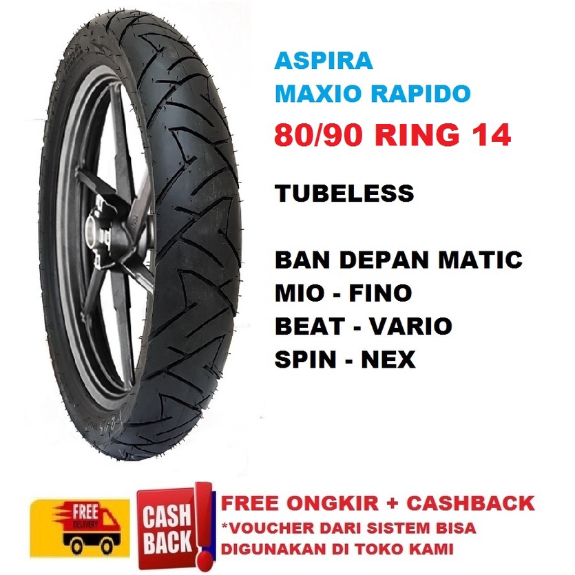 Promo Ban Depan TUBELESS Motor Matic Aspira MAXIO Rapido 80/90 ring 14 vario beat mio