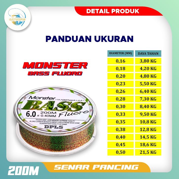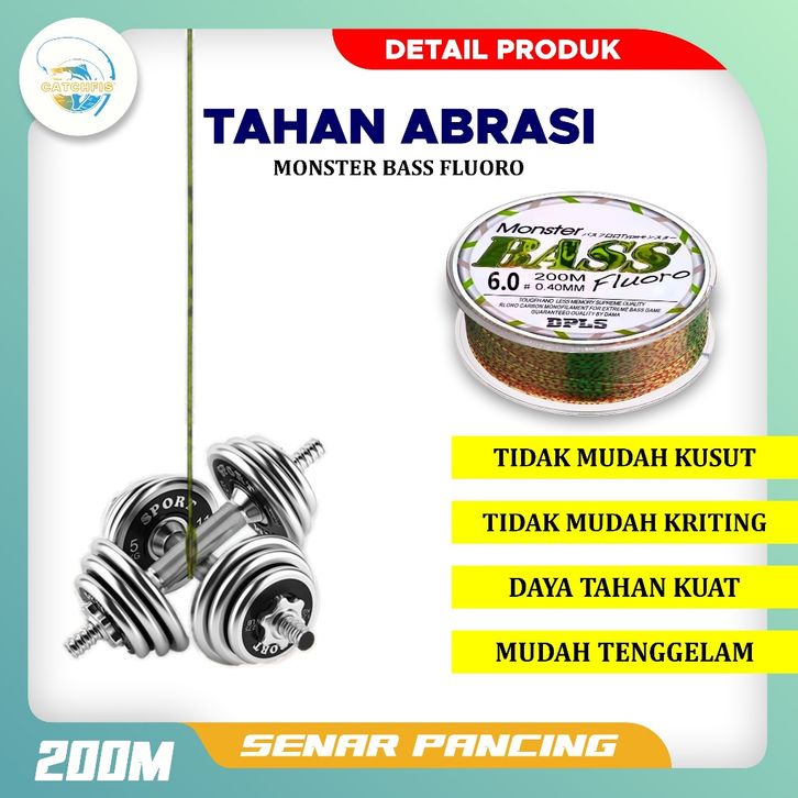 Senar CATCHFIS Tali Pancing Bass FLUOROCARBON 200M Hijau Lumut Bahan Nilon