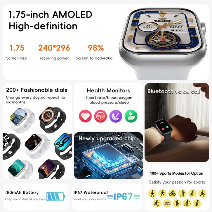 Smartwatch Anak Original Leemix S10 Mini Smartwatch 1.75" AMOLED - Slim - BT Calling - Sport M0De & Health Monitoring