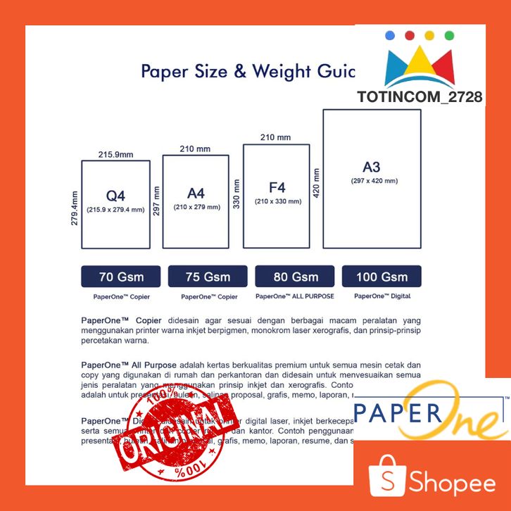 Kertas HVS A4 Kertas HVS Paper One A4 759r kertas fotokopi Print Paperone