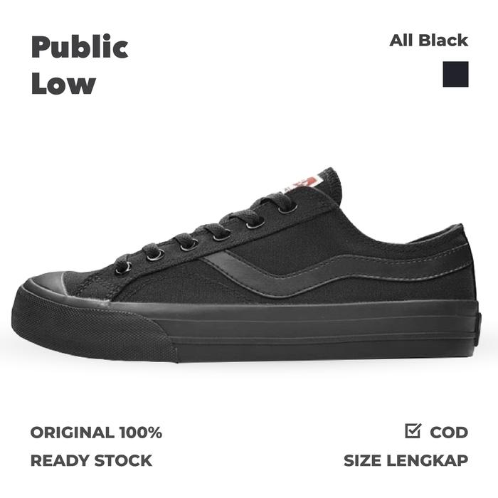 Ventela Public Low All Black Sepatu Vulcanized Sepatu Sneakers Pria Wanita Vulcanized Original 100%