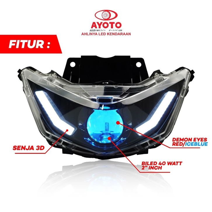 Headlamp Reflektor Full Set Beat Deluxe BILED Projector 2Inchi 40Watt Ayoto Plug And Play Premium Free Saklar 3Step