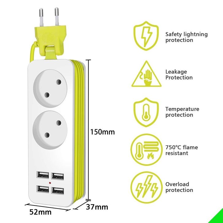Stop Kontak Original Stop Kontak Traveling 2 lubbang Saklar + 4 Port USB – Colokan Listrik