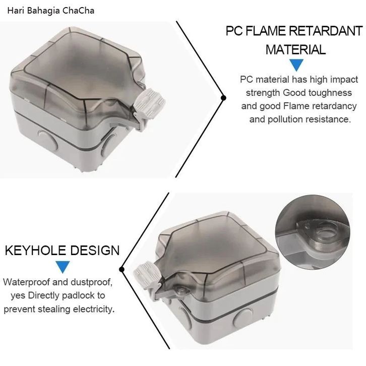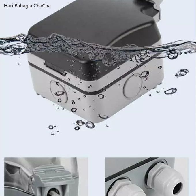 Stop Kontak Original Stop Kontak Outdoor Waterproof IP66 EU Colokan Power Socket Box Tahan Hujan Anti Debu