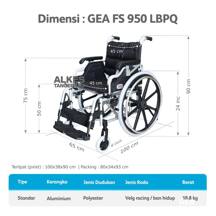 Kursi Roda Aluminium Velg Racing Nyaman GEA FS 950 LBPQ / FS950 LBPQ / FS-950 LBPQ