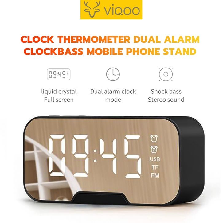 【】Viqoo Speaker Bluetooth S10 5.0 Alarm LED Mirror Display Ultra Speaker bluetooth super bass Radio bluetooth speaker