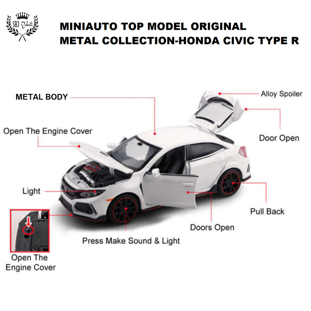 DIECAST MOBIL HONDA CIVIC TYPE-R MINIAUTO ORIGINAL SKALA 1:32 METAL SERIES