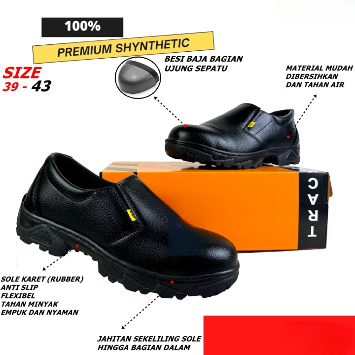 BEST SELLER - Sepatu Safety Slip On Septi Pria Ujung Besi Septy Slop Kerja Lapangan Proyek
