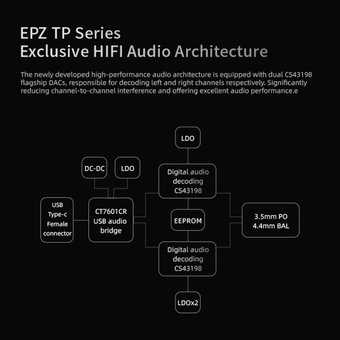 EPZ TP35 / TP35 PRO Dual CS43198 DAC Chip Amplifier Earphone Adapter