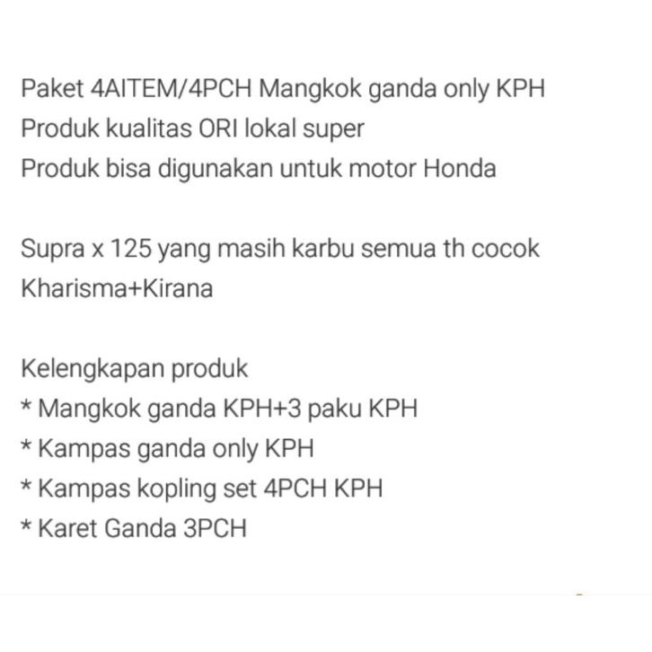 Paket Mangkok Ganda Original Paket 4aitem Aitem kampas kopling KPH+Ganda KPH+Mangkok KPH+Karet Ganda Supra 125 Karbu Kh