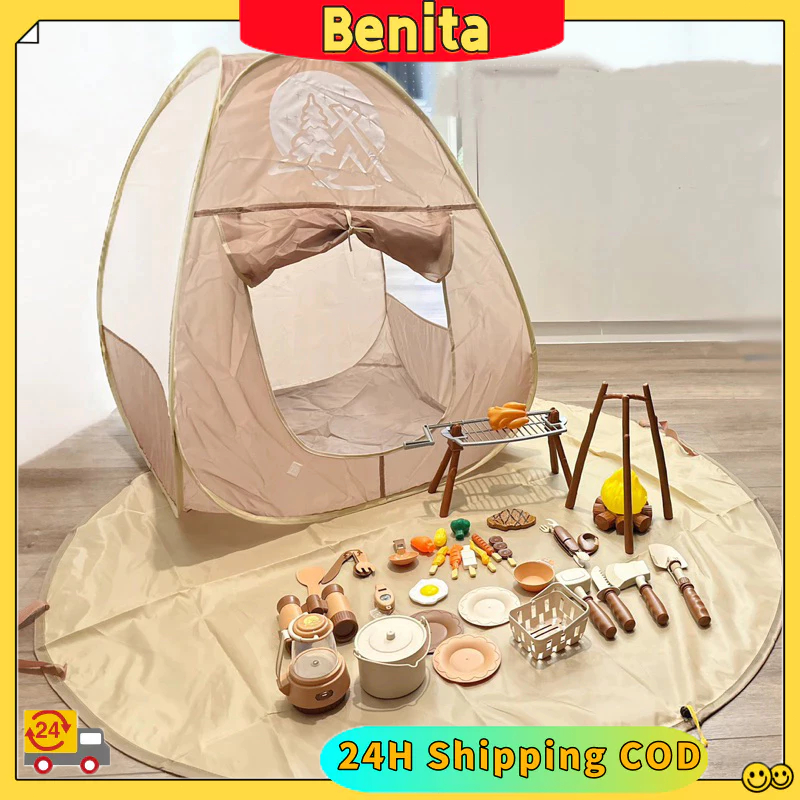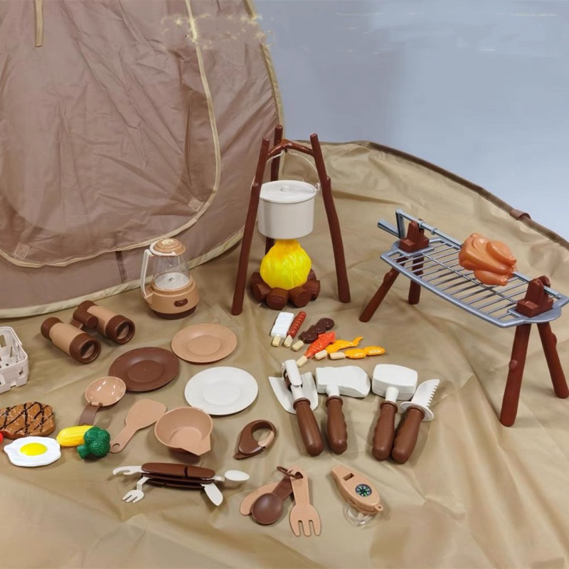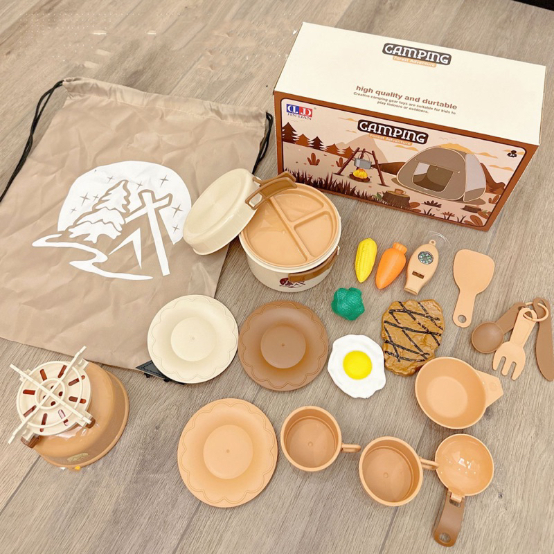 camping set pretend play with cooking utensil mainan masak2an bbq
