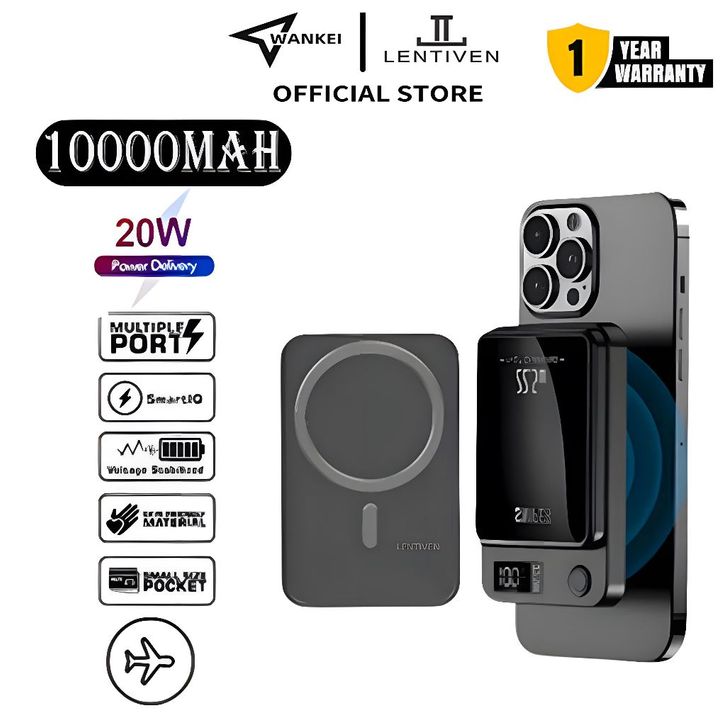 WANKEI LENTIVEN Powerbank 10000mAh Mini Fast Charging Wireless Magnetic Magsafe Led Display