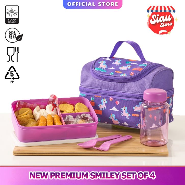 KOTAK MAKAN ANTI TUMPAH LUNCH BOX SET 4 PCS CPM NEW PREMIUM SMILEY KOTAK BEKAL MAKAN ANAK KARAKTER BEST SELLER