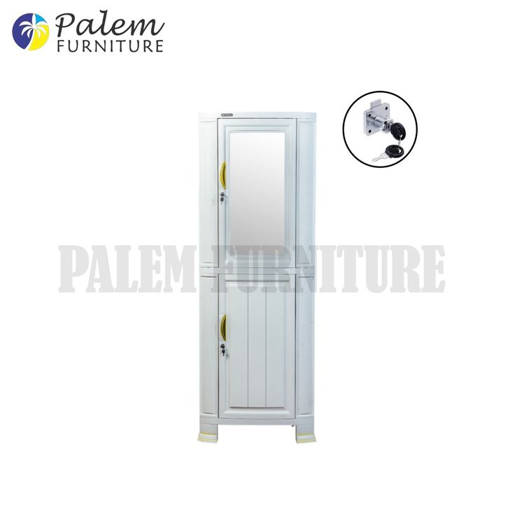 lemari plastik Napolly Cabsul1 Lemari Pakaian 1 Pintu Putih Full Rak Cermin