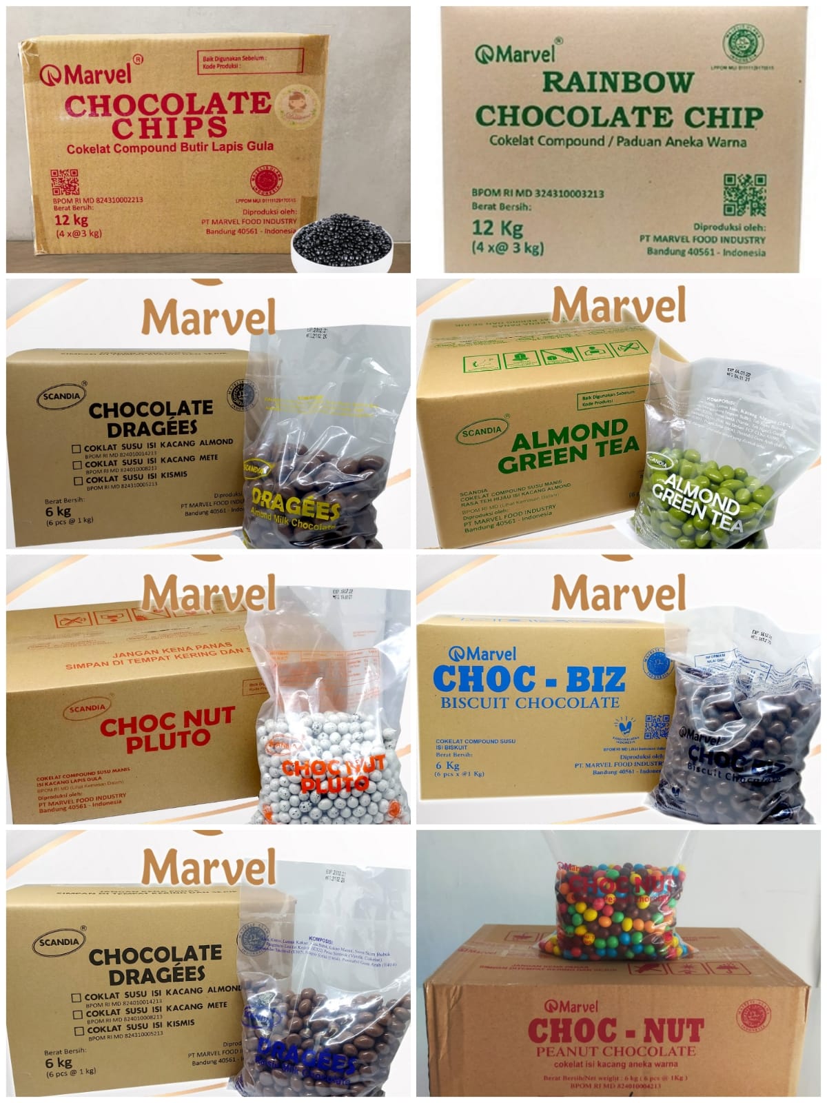 Scandia Cashew, Scandia Almond, Scandia Almond Greentea, Scandia Choco White, Scandia Choco biz Dark, Scandia Choco biz Milk, Scandia Choco Chip, Scandia Mini Rinbow, Scandia Big Rinbow, Scandia Assortment, Scandia Hazelnut, Scandia Pluto, Scandia Choco nut, Scandia Raisin/ isi kismis
