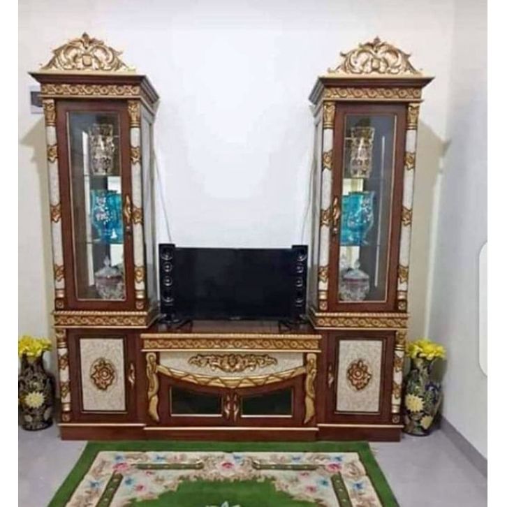 Murah Bufet Tv Minimalis Kayu Jati Cocoa Glossy Keren