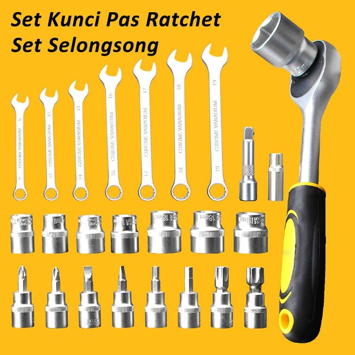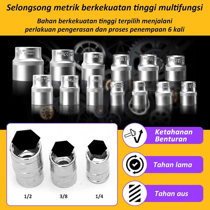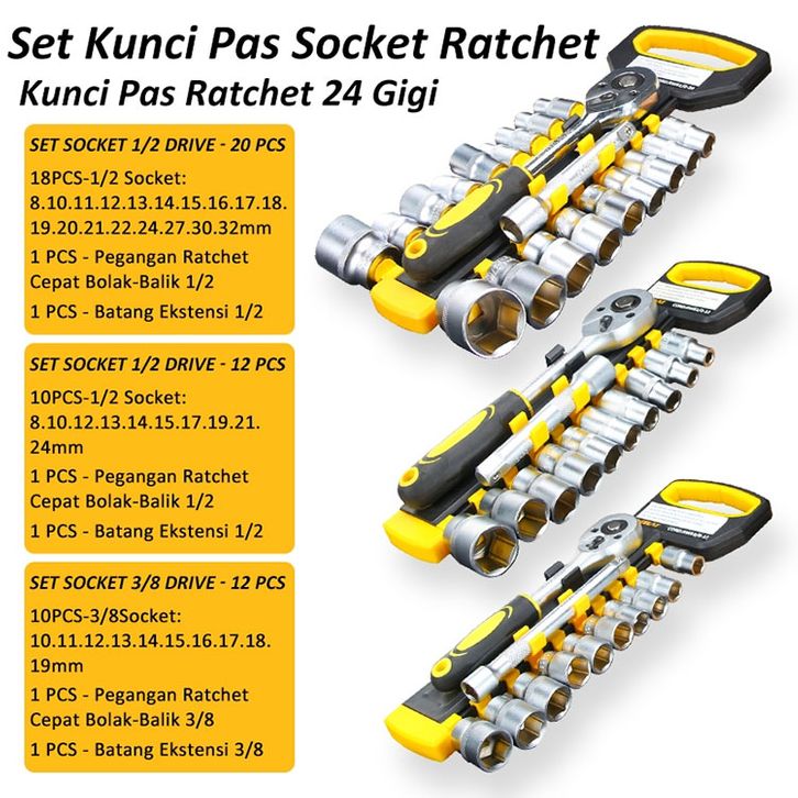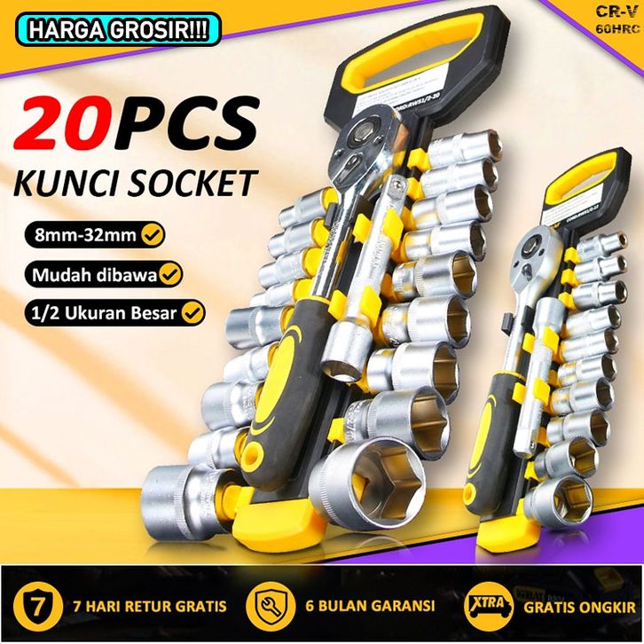 KUNCI SOCKET KEELAT SHOCK SET 20PCS 1/2 8-32MM CR-V SOKET WRENCH TOOL KIT LENGKAP SET SOK MOTOR 12PCS 3/8 INCH EXTENTION