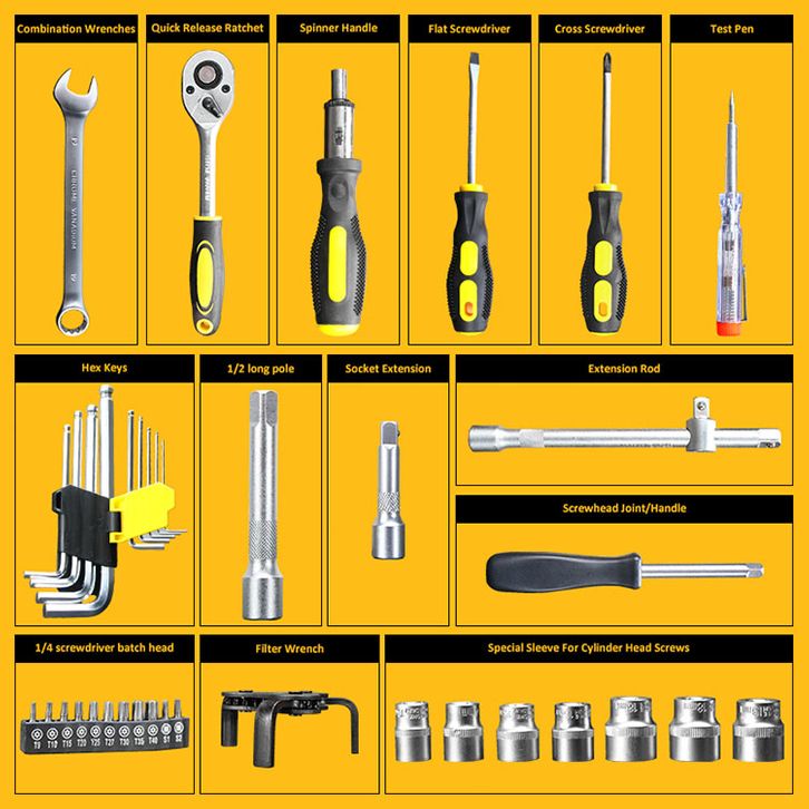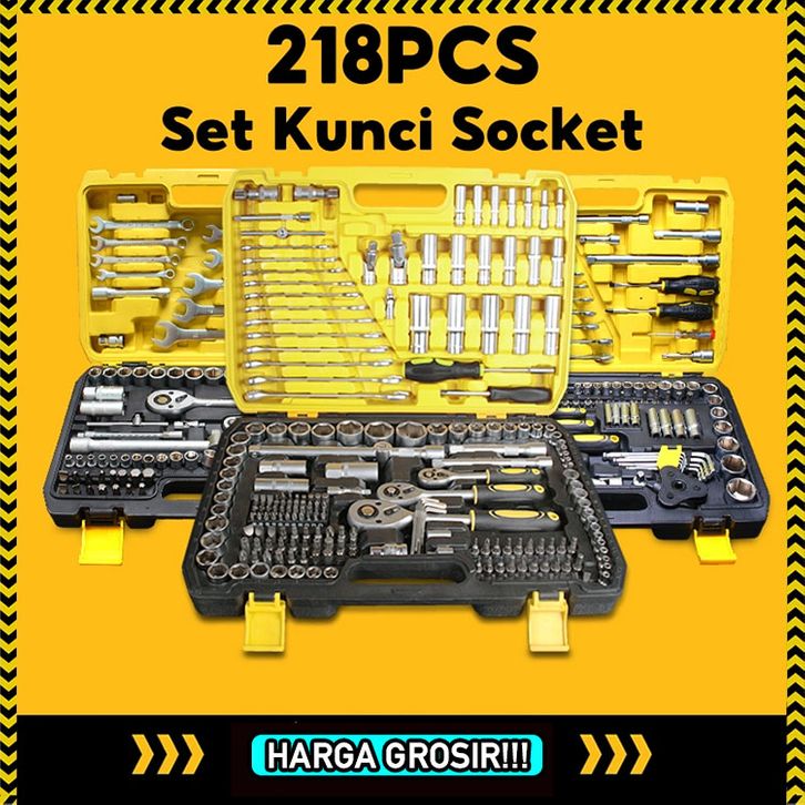 Kunci Socket Set KEELAT 218PCS 1/2 3/8 Inch 60HRC Shok Soket Tool Kit Motor Kunci Socket 61pcs Wrench Extention Pas Sok
