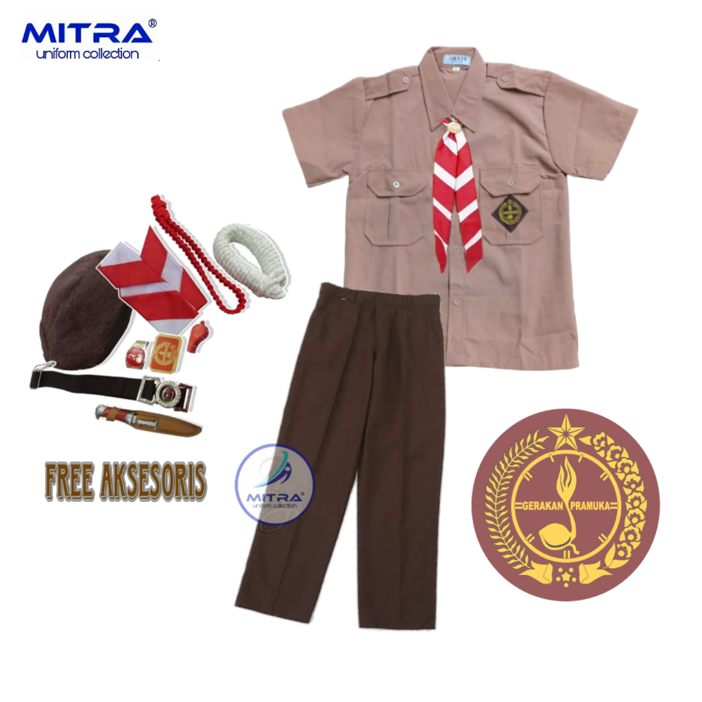 Seragam Pramuka Penggalang SD Pendek-Panjang Setelan Anak Laki Laki Kelas 1-6 SD Fre Atribut Pramuka