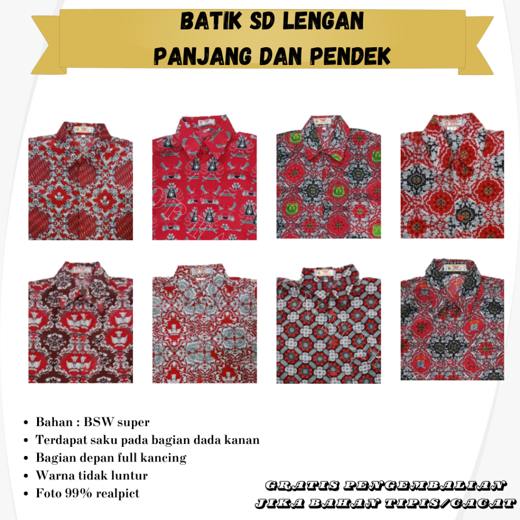 Batik SD Nasional Lengan Pendek Dan Panjang Bahan Lembut