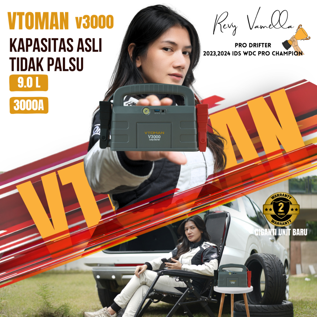 Vtoman V3000 Jumper Aki 12000mAh 12V Powerbank Jumper Aki Mobil Dan Motor Car Jump Starter Multifungsi Power Bank Mobil Jemper Aki Portable