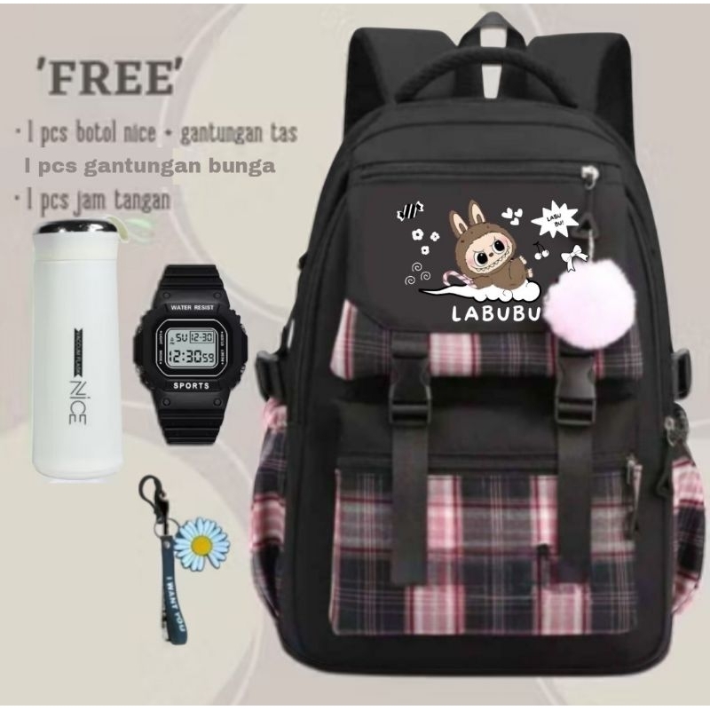 READY TAS SEKOLAH LABUBU MODEL TERBARU BANYAK BONUSNYA TAS SEKOLAH ANAK PEREMPUAN SD MOTIF LABUBU VIRALL TAS BONEKA LABU