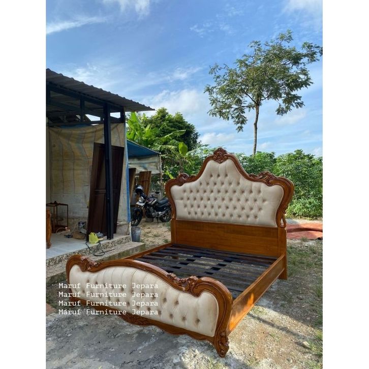 Terlaris Dipan Tempat Tidur Ukir Kayu Jati Natural Jok Elegan
