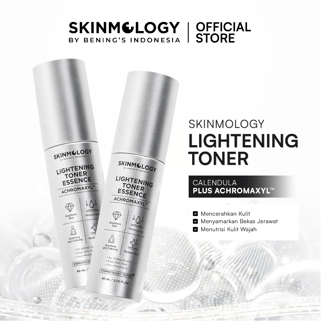 Skinmology By Bening's Indonesia - Paket Bright & Glow Treatment - Isi 6 pcs Sabun Muka Krim Siang Krim Malam Toner Moist Serum - Achromaxyl - Mencerahkan Glowing Kulit Kusam - Pria Wanita Busui