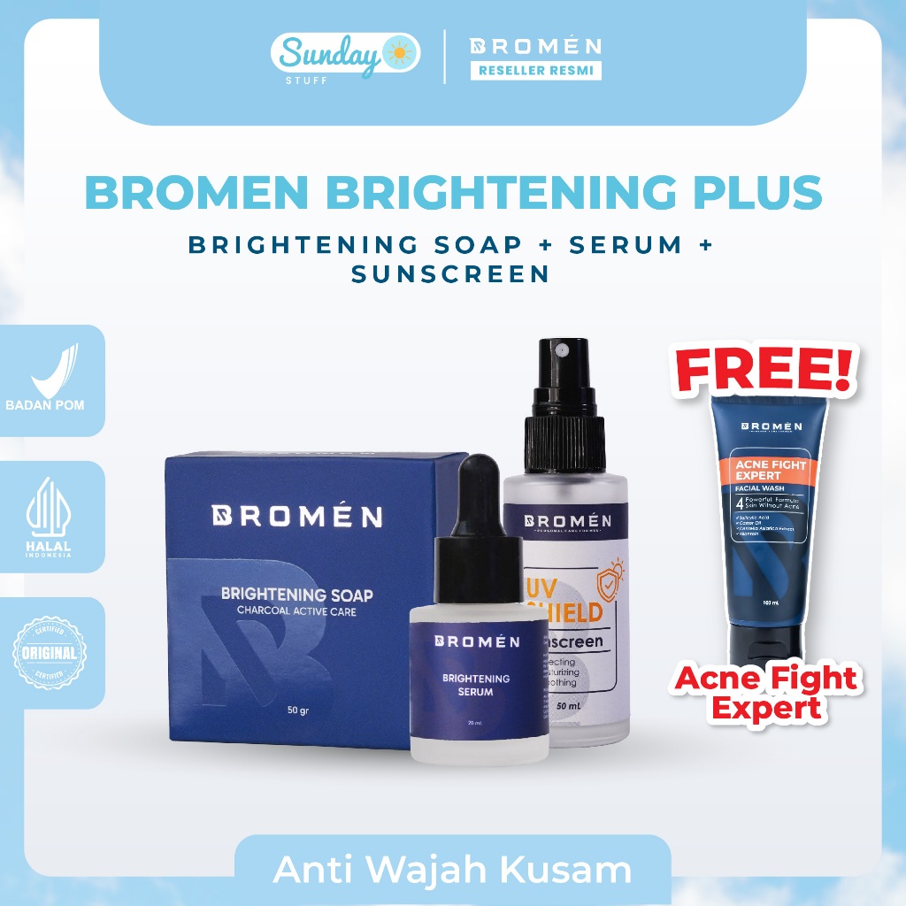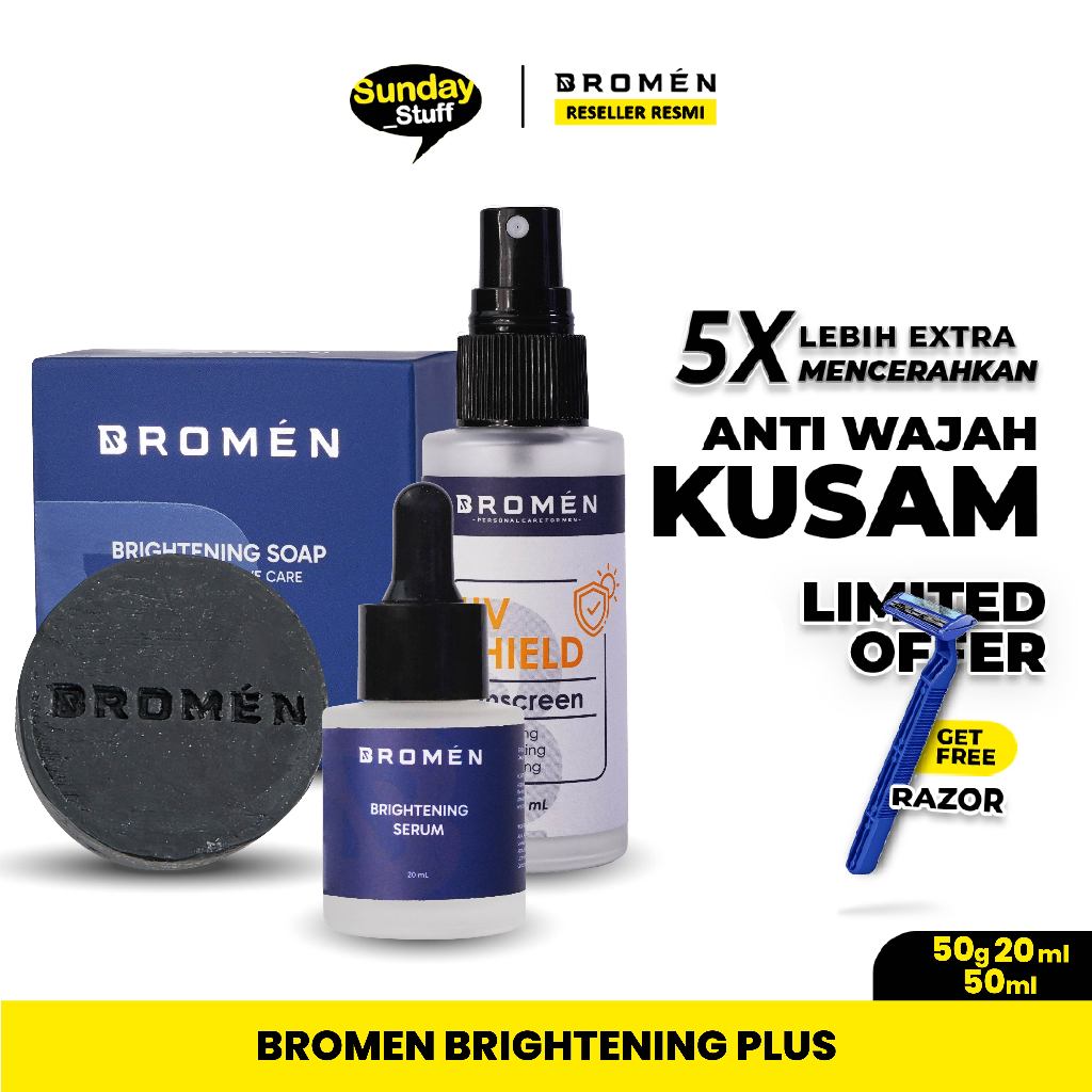 BROMEN Brightening Plus UV - Brightening Soap + Serum + Sunscreen Skincare Pria Anti Wajah Kusam