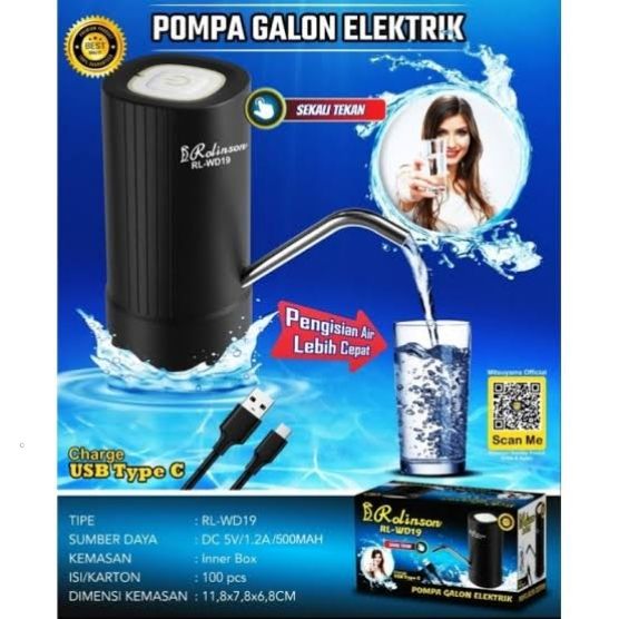 Pompa Galon Elektrik Rolinson Charge Type C Pompa Air Galon tomatis