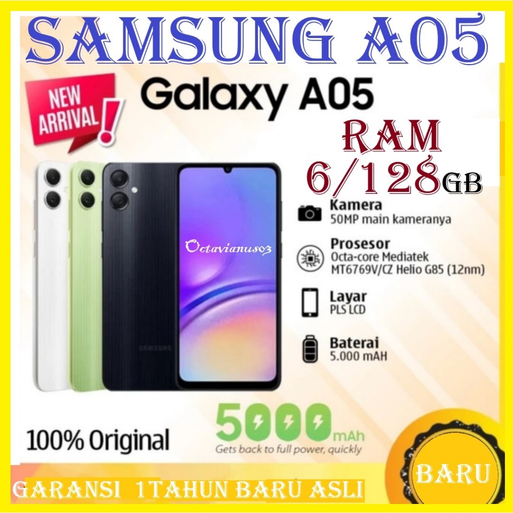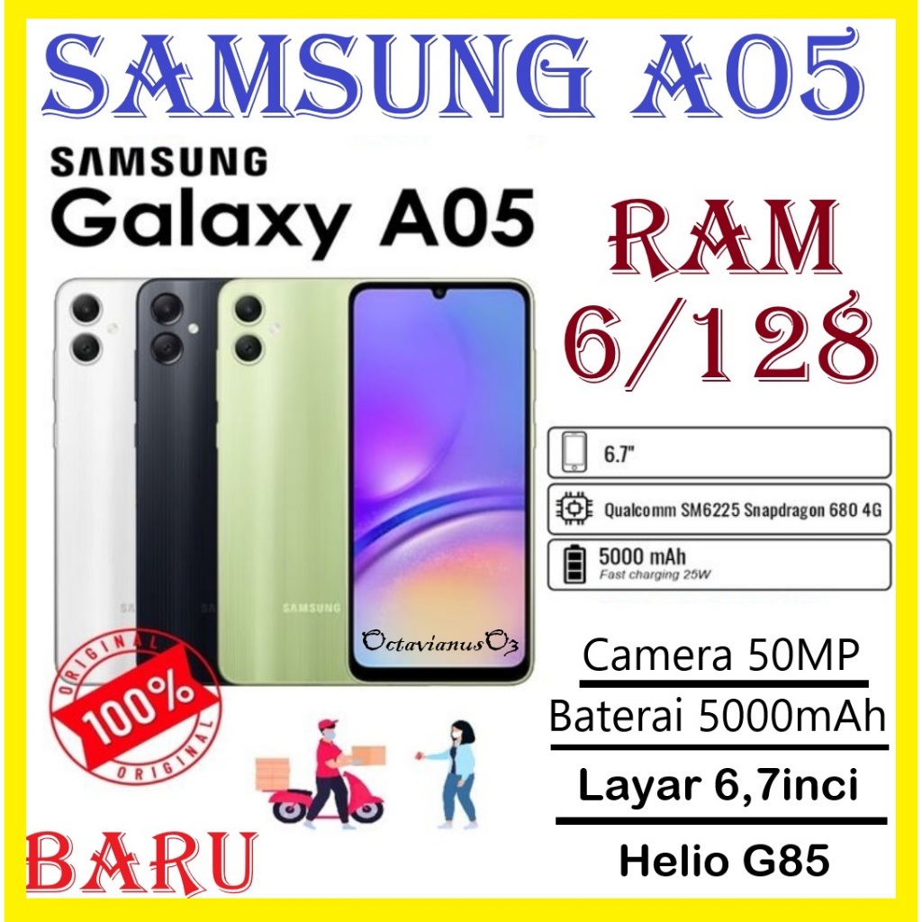 Hp SAMSUNG GALAXY A05 ORI RAM 6/128GB [Dual sim+5000mAh+layar 6,7inci+Camera 50MP ] BARU FULLSET GARANSI 1 TAHUN