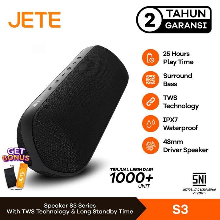 Speaker Bluetooth Portable JETE S3 IPX7 Waterproof - Garansi 2 Tahun